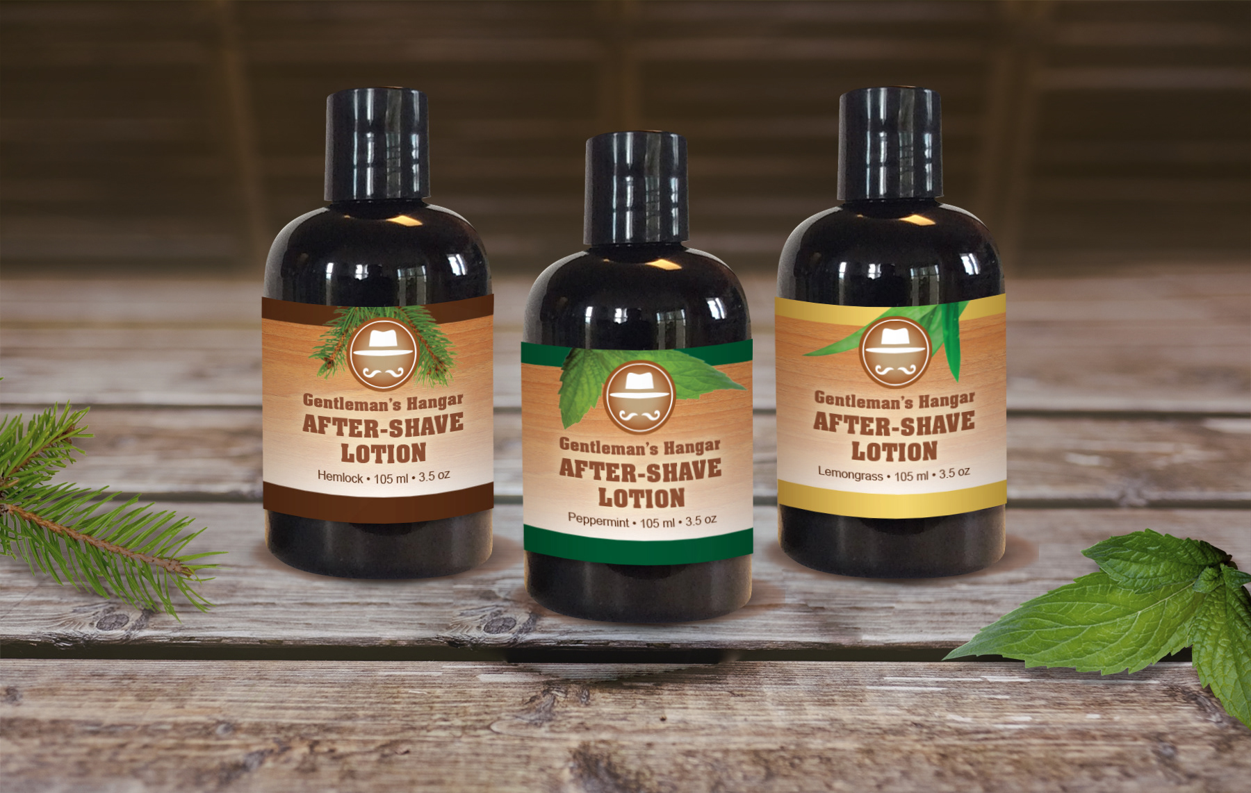 After-Shave Lotion packaging design for Gentleman's Hangar. Gentleman's Hangar makes all natural shaving products.