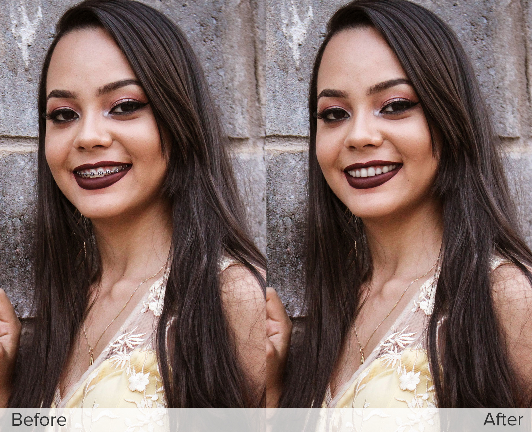 This model needed braces removed. I banished the orthodontics using clone stamp and healing tools at varying opacities.