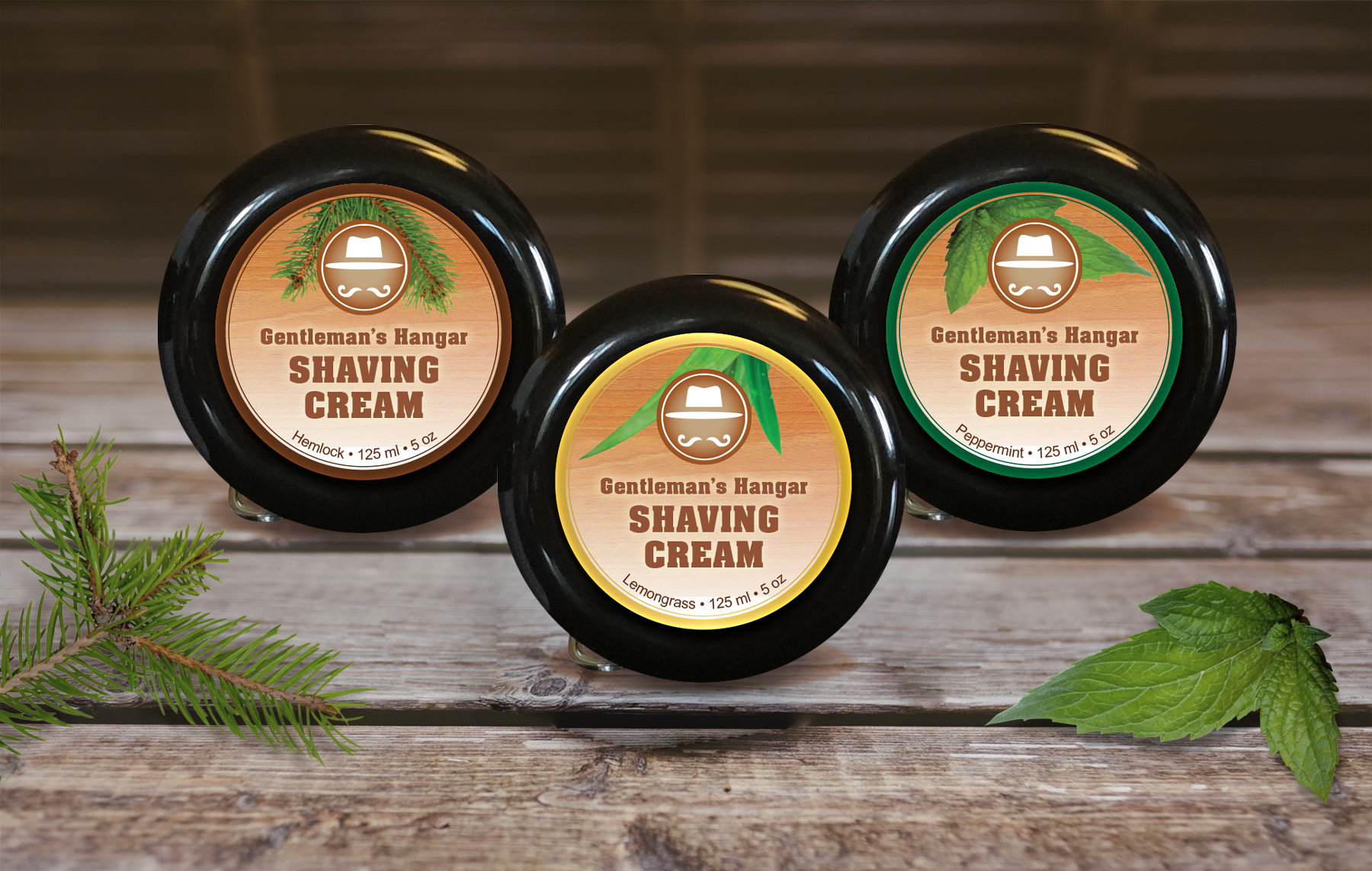 Shaving cream packaging design for Gentlemen's Hangar. Gentlemen's Hangar makes natural shaving products.